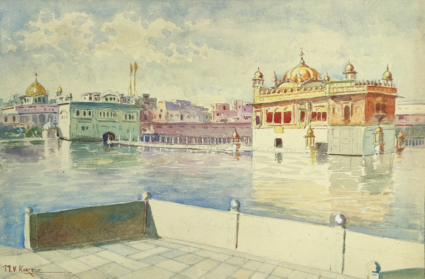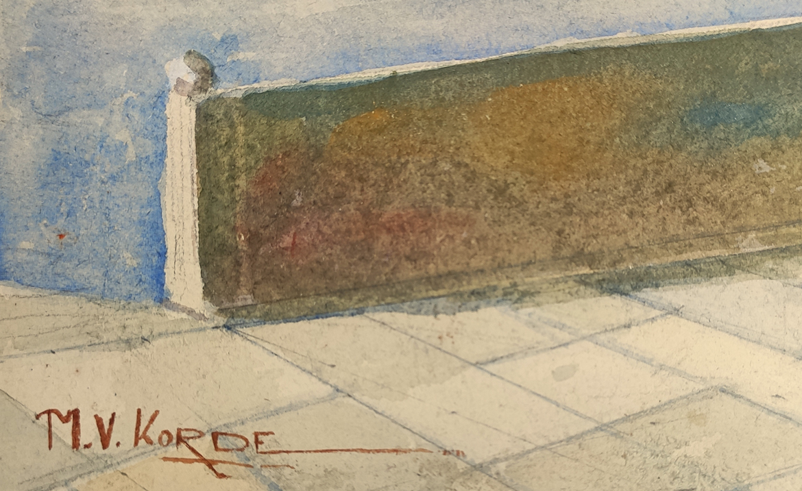 <p>M V Korde was a landscape and portrait painter active in Maharashtra during mid twentienth century. He was particularly well known for his watercolor landscapes, many of which he painted on site.</p> <div> </div>