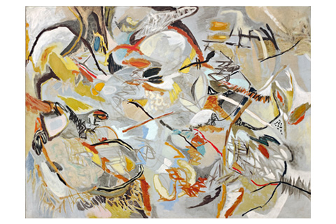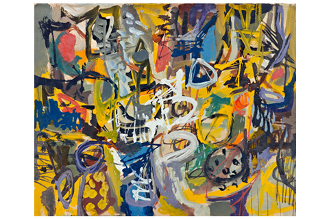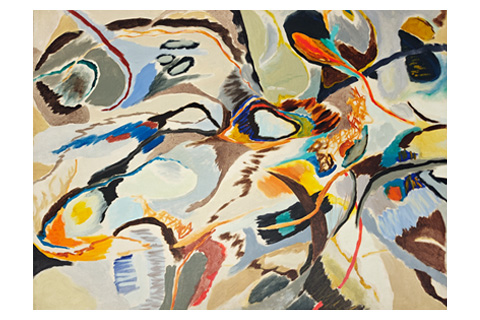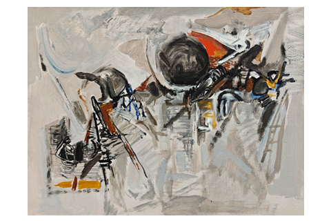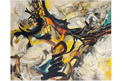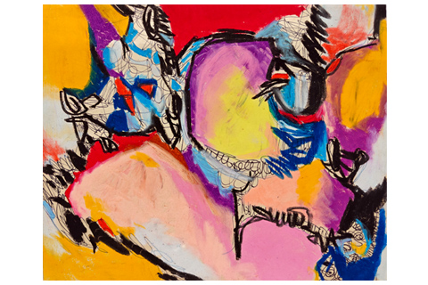 Perhaps, ironically, the work that best elucidates Mohite’s abstract language is a singular figurative painting of a horse. Its elongated curvature and starkly delineated anatomy reveal the process of interpreting the specific object as a nonrepresentational assemblage of gestural marks. Looking and listening closely, one finds that there is indeed a relentless rhythm to Mohite’s kaleidoscopic abstractions as they — with their surges of colour, reverberatory forms and vagabond geometry — distil the phenomenal world into a vivid, musical throb.