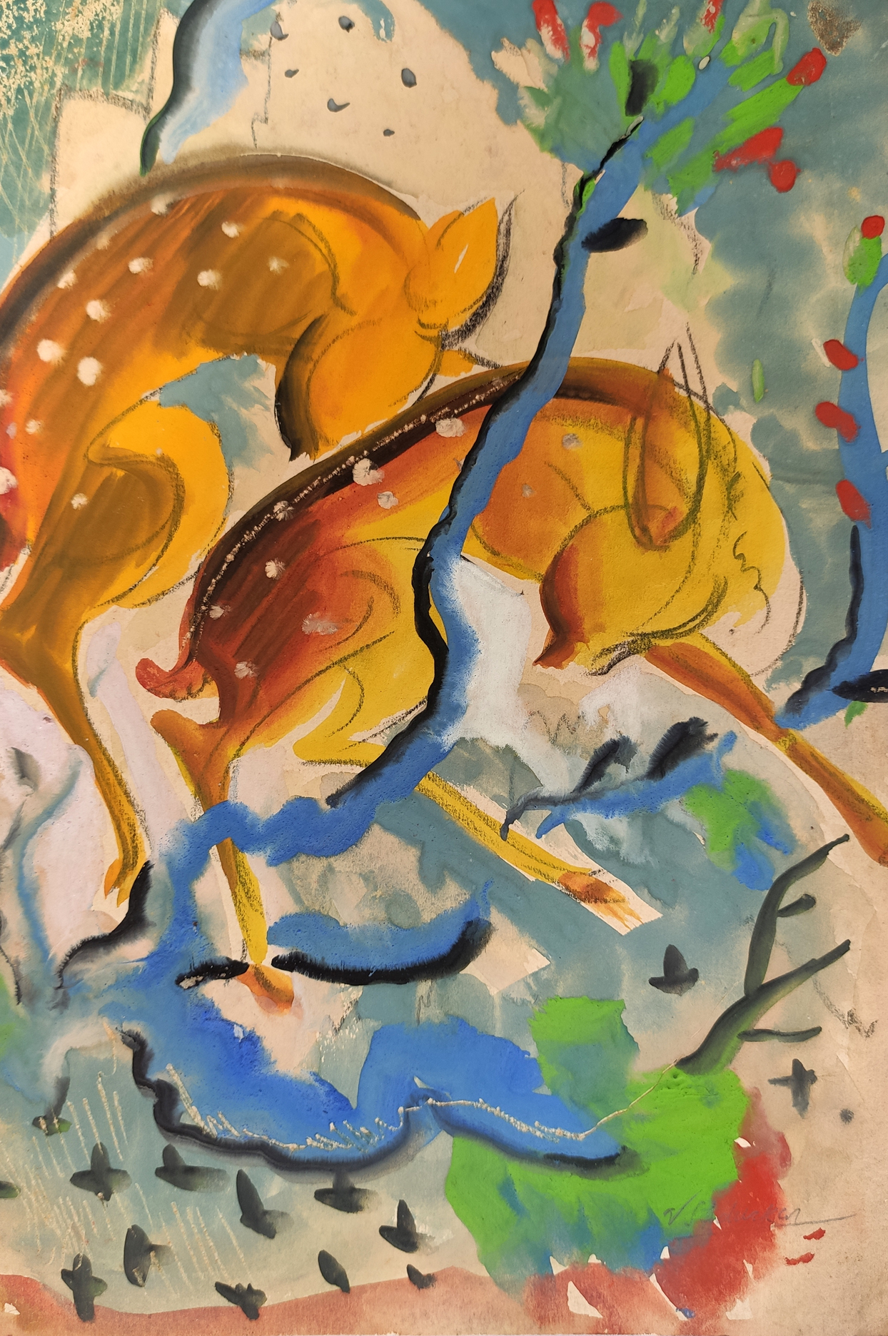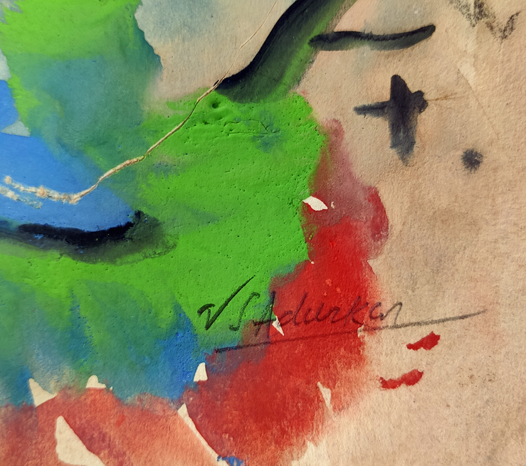 V. S. Adurkar (1907-1984) was and Indian painter, art educationist and administrator. Originally from the Konkan region in Maharashtra, Adurkar enrolled at the Sir J. J. School of Art in 1928. Artists Gopal Dueskar, Vishwanath Nageshkar, J. D. Gondhalekar and Ambika Dhurandhar were his batchmates. He completed his Diploma in Drawing and Painting in 1931 and won the Dolly Cursetjee award; and by 1936 he completed his training in sculpture. In the same year he travelled to London for further studies and earned his A.R.C.A degree from the Westminister school at the Royal College of Art. He returned to India in 1939 and held a solo show of his works at the Brabourne stadium in Mumbai.