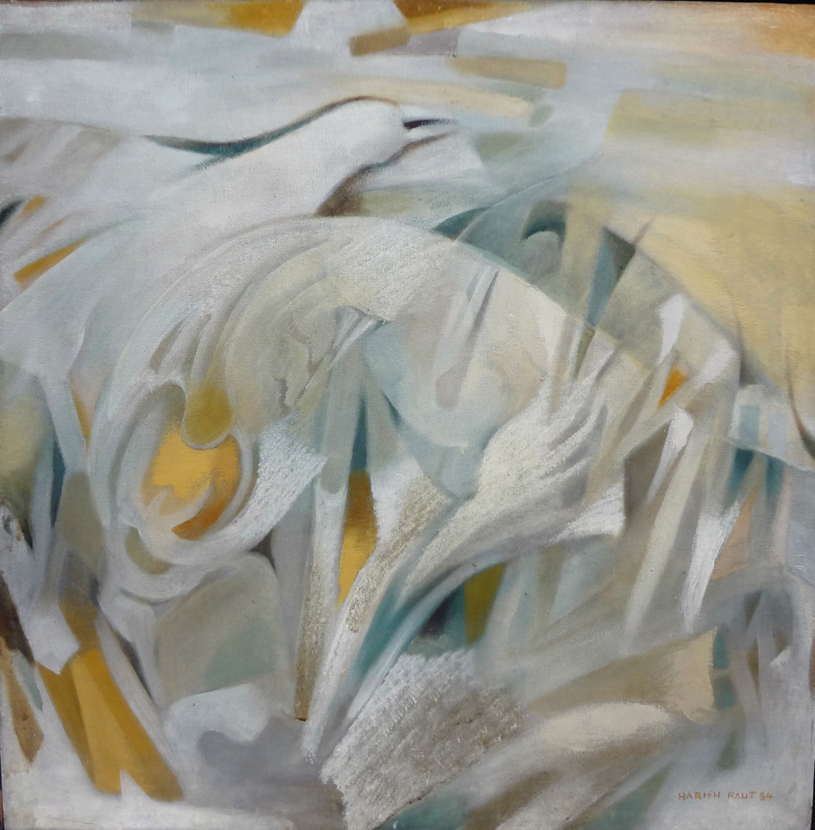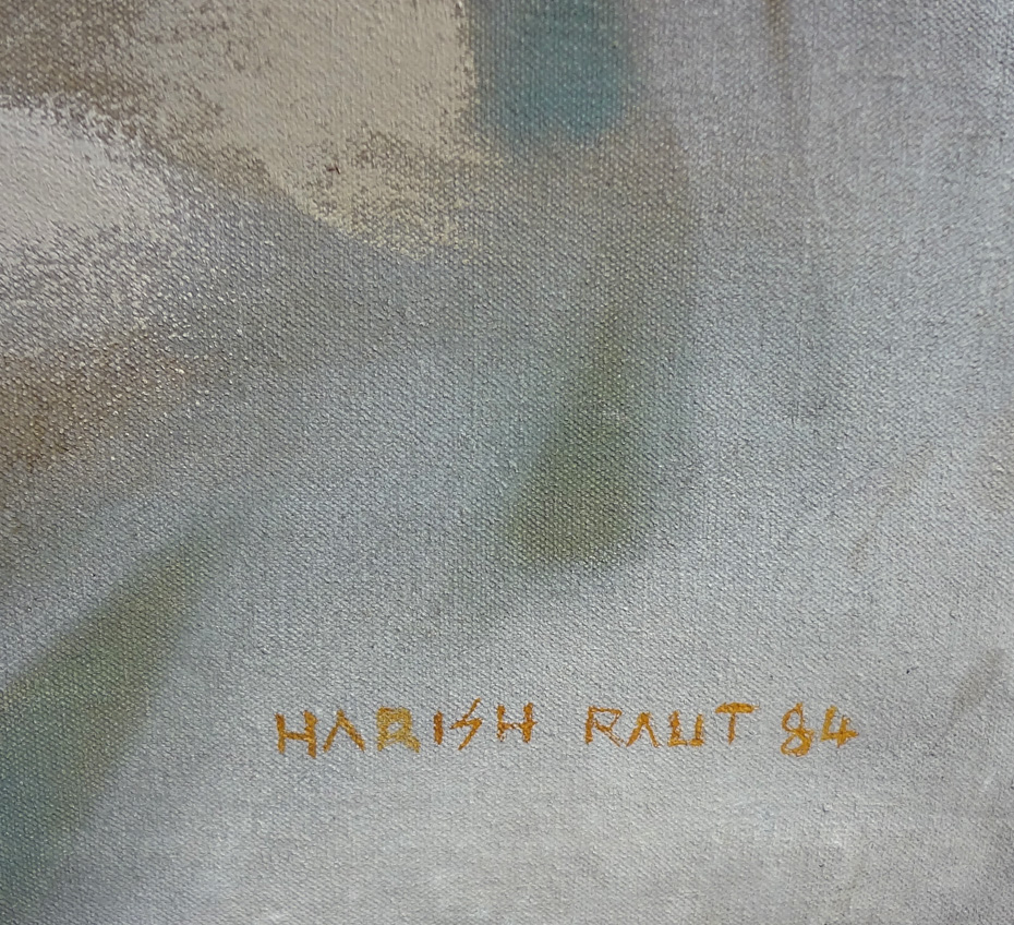 Harish Raut (1925 – 2002) was an artist who developed a distinctive figurative style. Idealized rural women, going about their daily chores was the main subject of his work. His early work was based on the rural realities of his hometown Bordi and the neighbouring town of Bassein, Maharashtra. Rural India continued to inspire him and he found his muse once again in the women of Rajasthan, Madhya Pradesh and Kerala.