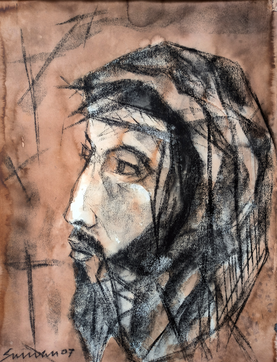 Suman Roy (1968 – 2012) was an artist born in Kolkata, India, and studied art at Kala Bhavan, Santiniketan. In the early stages of his career, Suman Roy explored rural Bengal imagery in his artwork. However, he later shifted towards abstract figuration and found his own artistic voice by focusing on portraiture of Christ in various moods and modes. His compositions often depicted Christ in a lonesome manner, conveying a delicate balance of pain and pleasure through a combination of bold and subtle colors. Suman Roy’s artwork, while simple in style, carried profound emotions and themes. His depictions of the divine may have mirrored his personal search for salvation. Sadly, his artistic journey was cut short by his untimely demise at a young age.