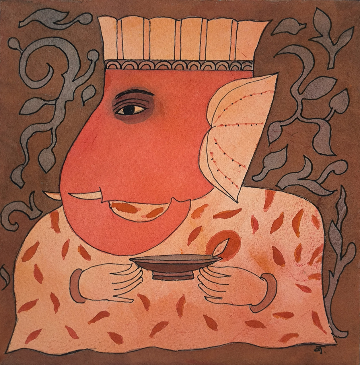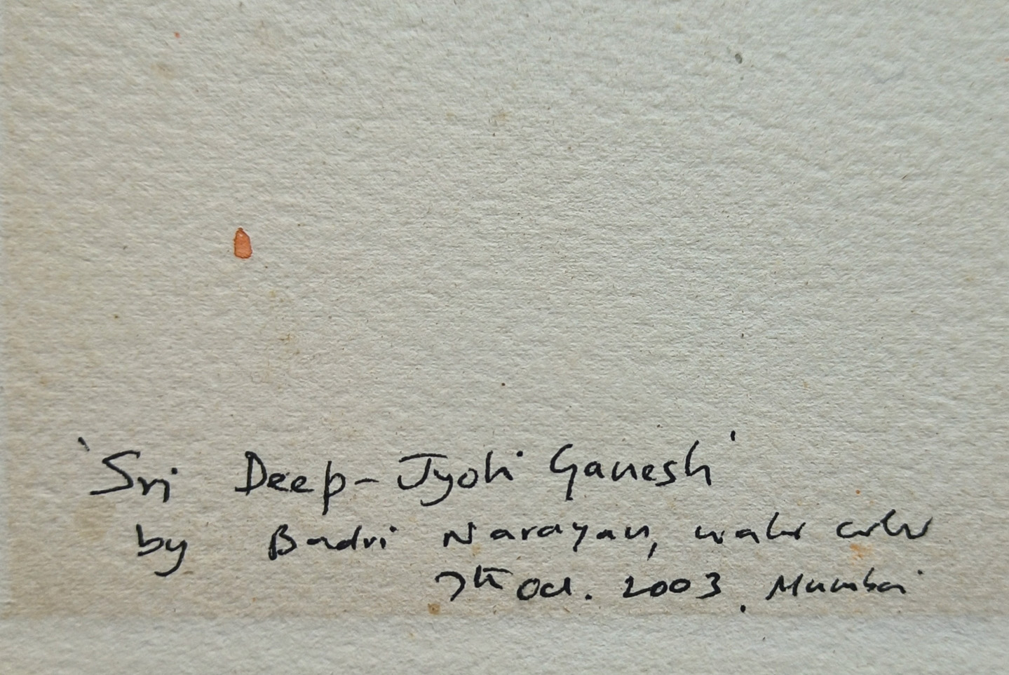 Badri Narayan(1929-2013) was an eminent artist, illustrator, author and story-teller. He started painting with no formal training, and his first public show was held in 1949, followed by a solo show in 1954. In the years since, he has had over 50 solo shows and his work is in several collections, including the National Gallery of Modern Art and the National Musuem in New Delhi. His paintings are intimate and appealing, often with an element of fantasy, with simple outlines and accessible subject matter in two-dimensional stylized representations. He also illustrated children's books and wrote short stories and verse. He has been the subject of a documentary by Mumbai All India Radio, and has received numerous awards, including the Padma Shri in 1987 and the Maharashtra Gourav Puruskar in 1990.
