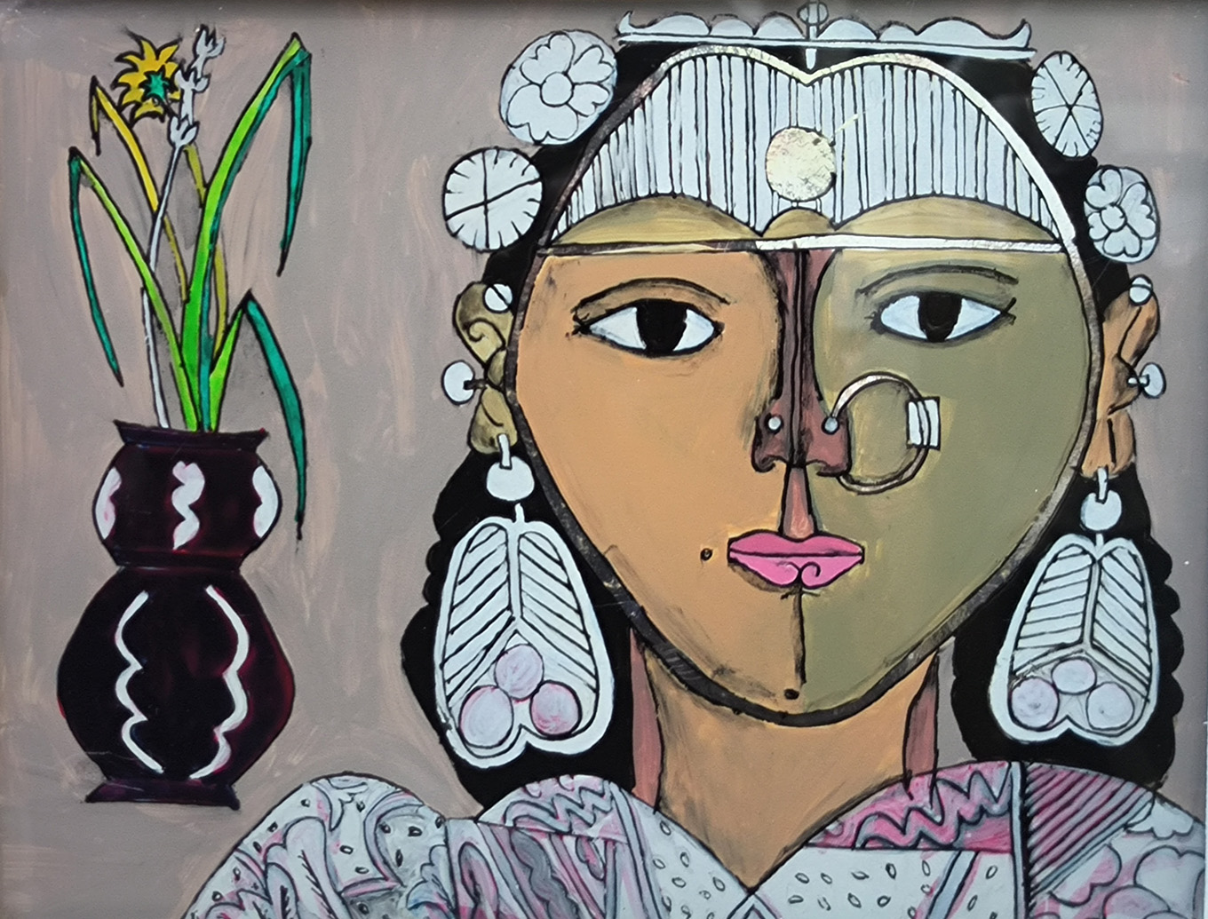 K. Laxma Goud was born in Nizampur, Medak district, Hyderabad, to Venka Goud and Anthamma. He is a painter, printmaker, and draughtsman who works in a variety of mediums including etching, gouache, pastel, sculpture and glass painting. He obtained a Diploma in painting from the Government College of Art and Architecture, Hyderabad. In 1963, he reached Baroda where he was exposed to contemporary art while learning traditional fresco techniques under the mentorship of K G Subrmanyan. After graduation, Goud made the unlikely step of returning to his village of Nizampur. With the newly educated viewpoint of an urban sophisticate, the artist found himself attracted to the unselfconscious attitudes toward sexuality that contributed to the relaxed atmosphere of village life. Laxma Goud began to interpret his childhood memories of rural and tribal vivacity through an urban grid in which surreal, libidinal tones mingled with fantasy and poetry. He created masterful small paintings of village life in a palette of monochrome grays. He also drew in pen and ink, and his drawings and etchings from this period are an interesting combination of village nostalgia, the surreal, and the erotic.