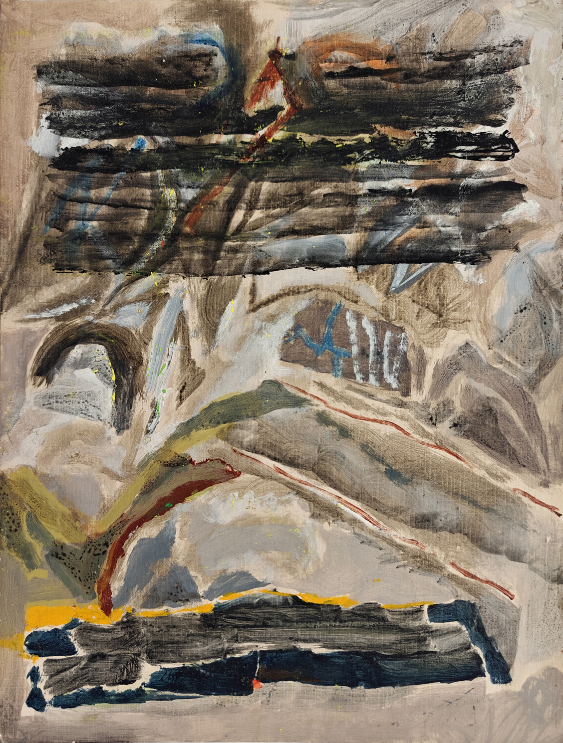 Coming of age soon after, Mohite left Gwalior. Between the late 1950s and mid-1960s, he lived briefly in Bombay as a student at the JJ School of Art’s Commercial Art department – a traumatizing experience for a youth brought up in the countryside, his only sanctuary being artist V. R. Amberkar's studio – before moving to Lucknow as a guest of the Maharaja of Samthar, a classmate of his late father. There, on a lark, he joined the local flying club, donning overalls and learning the mechanics of airplanes, indulging his love for working with his hands. While he never flew the machines, some of his paintings render the drama and dromos of motion almost as optical illusions, relying on both distance and persistence of vision for hints of topographies and figures to emerge.
