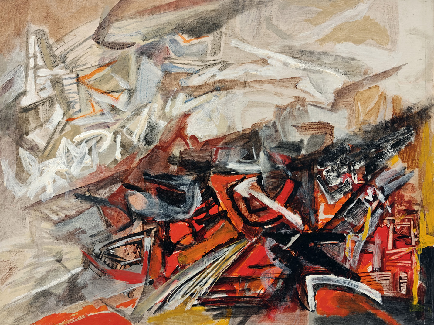 Throughout his itinerant years, Mohite continued to paint. By the 1970s, resettled in Gwalior, he had arrived at an improvisational vocabulary of abstraction, aided by his adoption of acrylic – then a relatively new, quick-drying and dynamic medium that suited his spontaneous approach. This period was the heyday of the abstract idiom in Indian modernism, when painters like V. S. Gaitonde, Bal Chhabda and Ambadas Khobragade, as well as the Neo-Tantrics were active. Mohite’s expressive play of form and space imparted a distinct character to his practice, reflecting both his musical sensibility and mechanical curiosity.